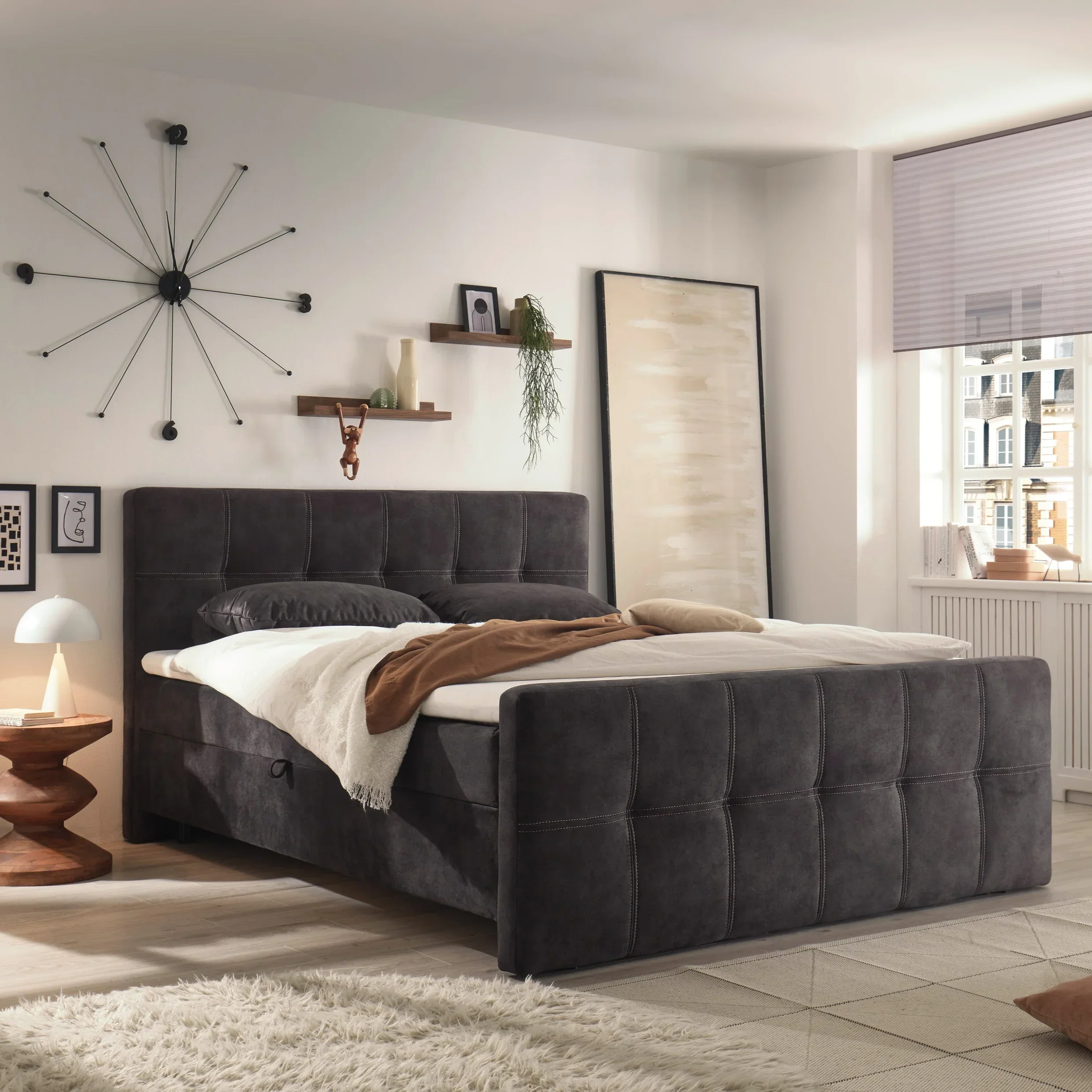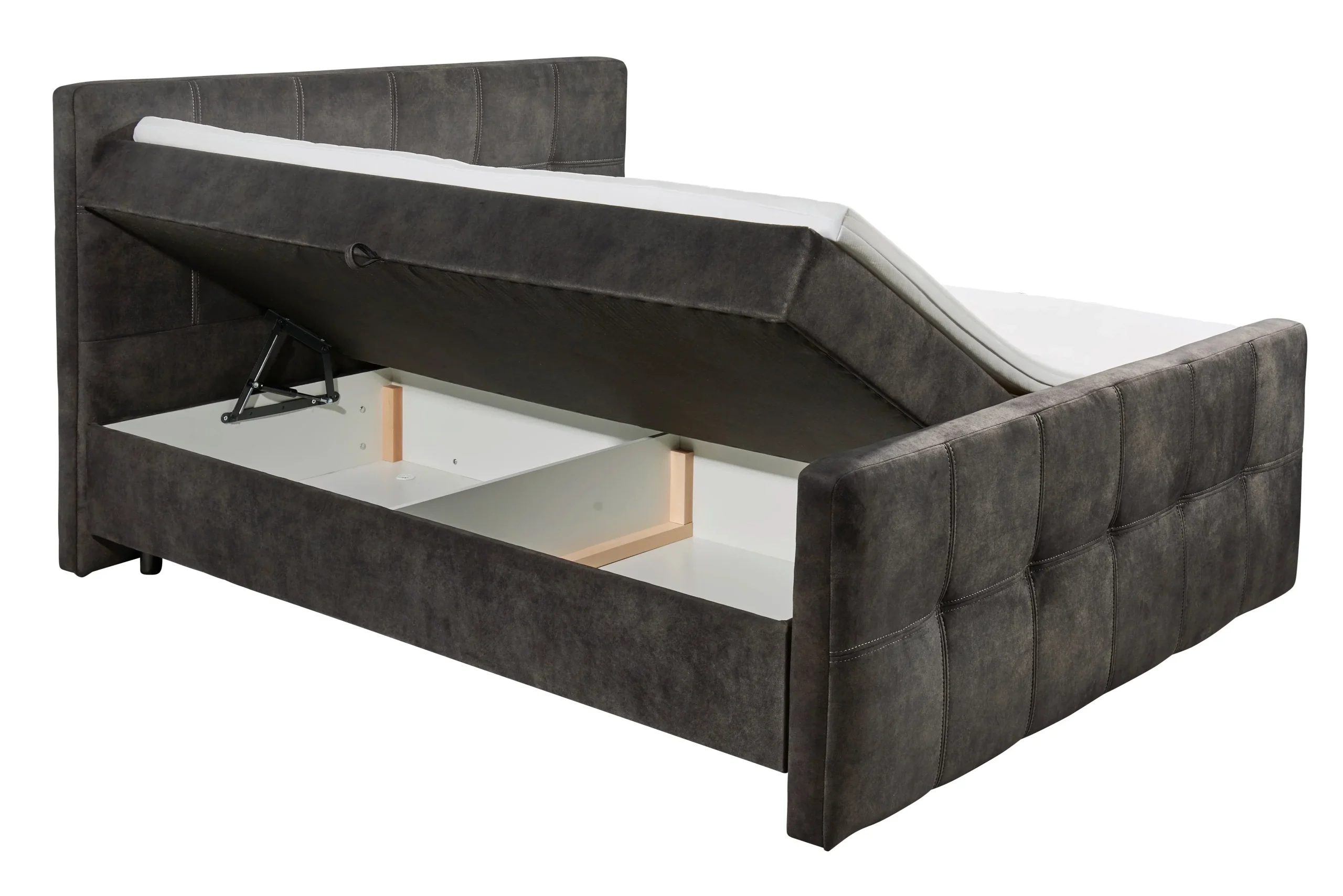De boxspring Valencia biedt de perfecte combinatie van stijl, comfort en functionaliteit. Deze elegante boxspring, bekleed met een luxe donkere velvet stof, straalt pure verfijning uit en vormt de blikvanger van elke slaapkamer. Dankzij het handige vlindersysteem opent de boxspring moeiteloos, waardoor je toegang krijgt tot de ruime opbergkoffer. Ideaal om beddengoed, kussens of andere spullen netjes en georganiseerd op te bergen.