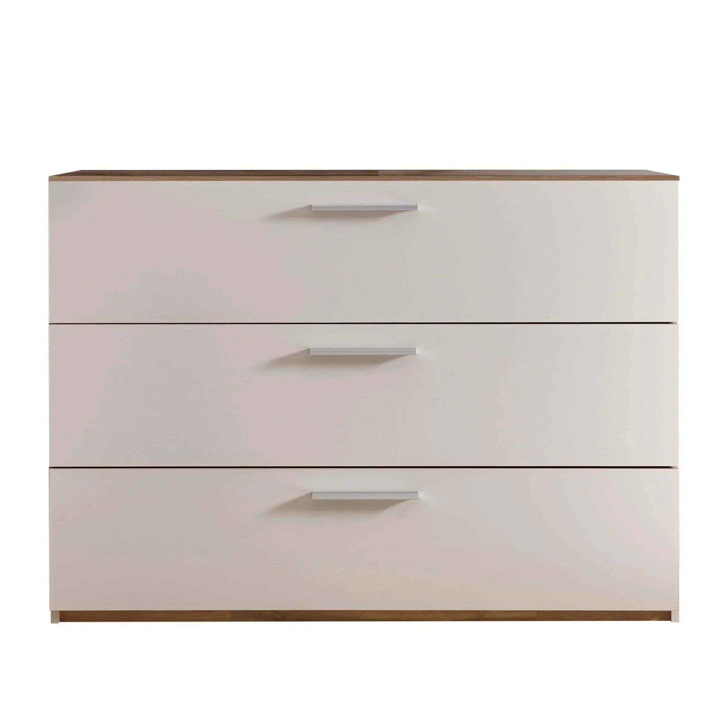 Commode Amore is een commode met 3 grote, brede laden in een lichte kleur met houten motief.