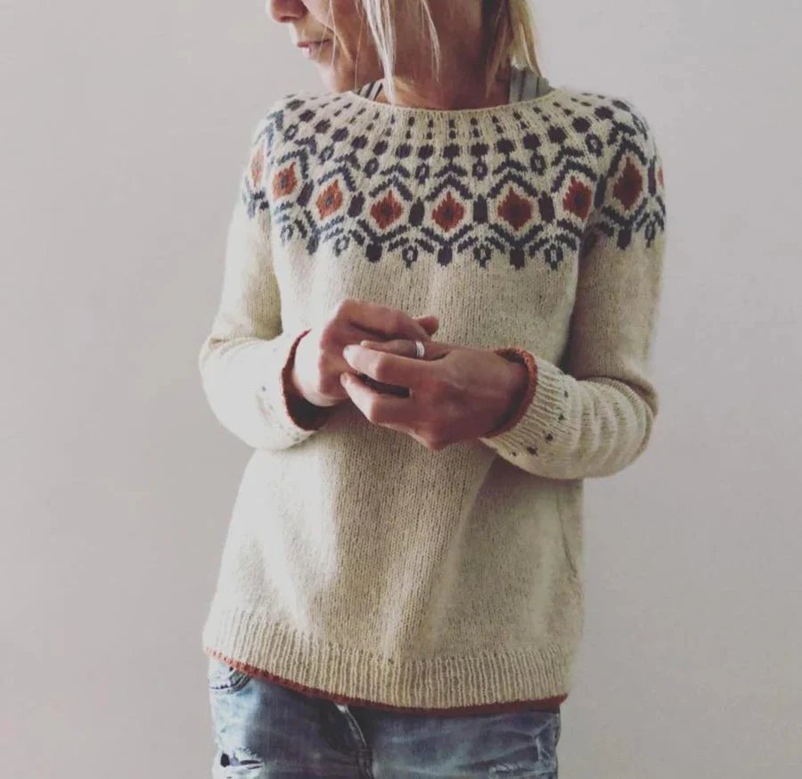 Geef je garderobe een stijlvolle update met deze dames herfstpullover. Het unieke patroon rond de kraag zorgt voor een warme uitstraling die perfect past bij het seizoen. Gemaakt van zachte, hoogwaardige materialen voor een aangenaam draagcomfort op koudere dagen.