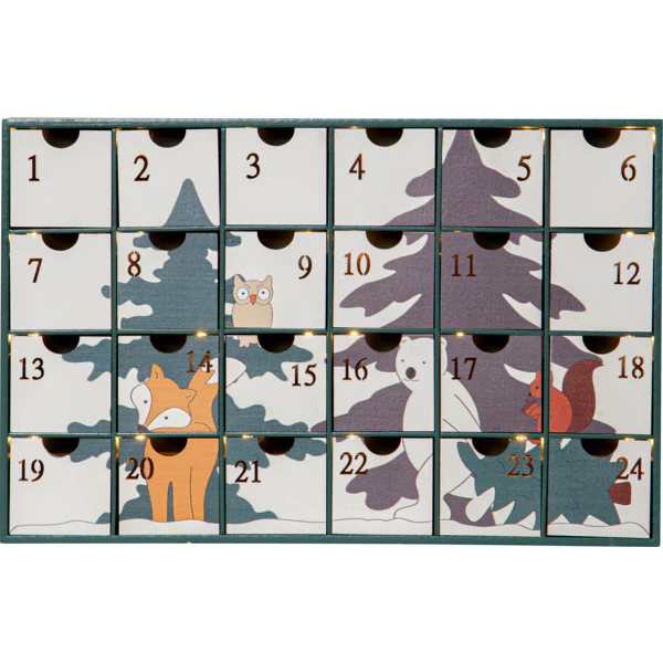 Deze adventskalender past perfect in diverse interieurstijlen en maakt het winterseizoen nog gezelliger. Geschikt voor kleine verrassingen zoals notities, snoepjes of kleine accessoires.