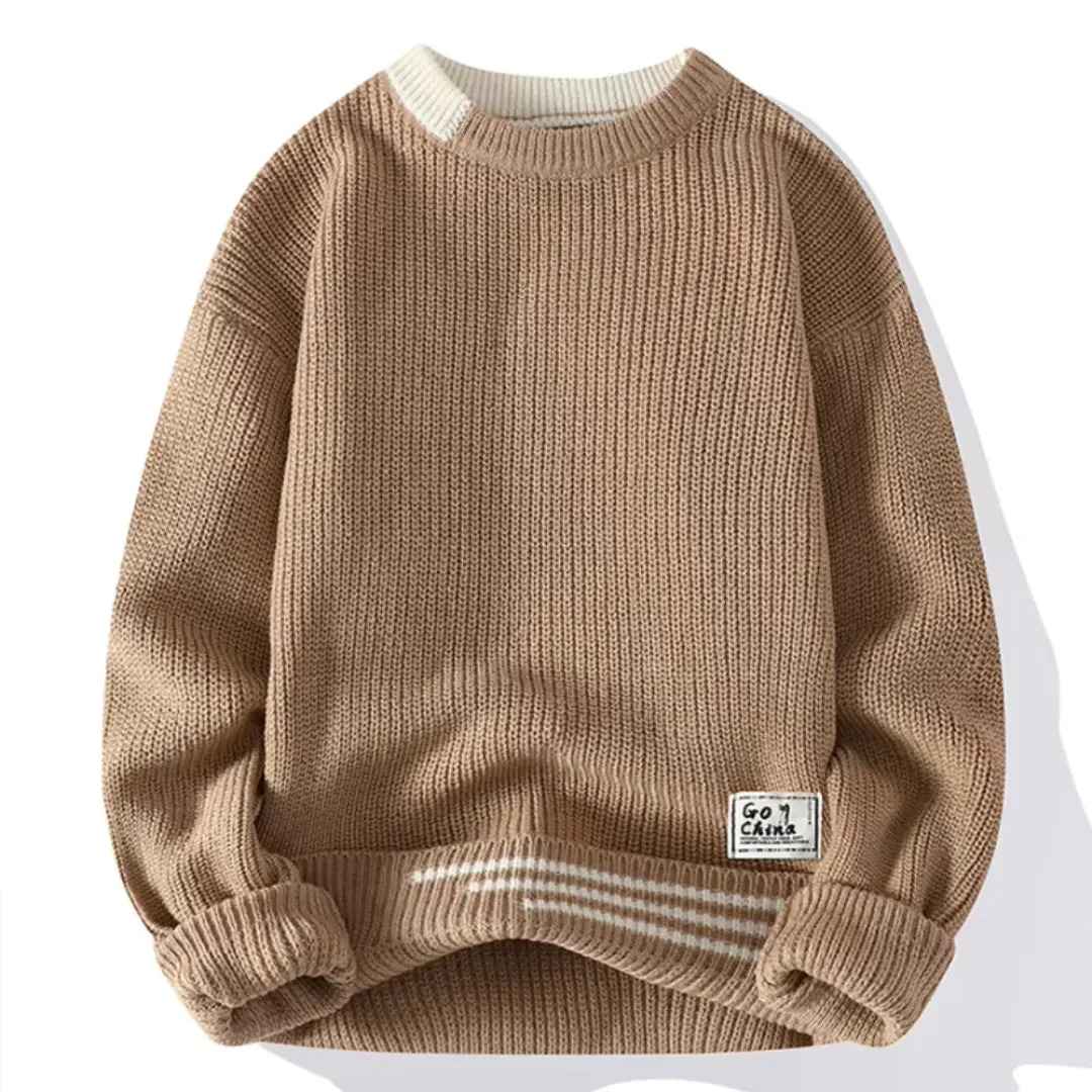 De Heren Gebreide Trui combineert een klassiek ontwerp met moderne details. Dankzij de zachte structuur en het subtiele strependetail is deze trui perfect voor dagelijks gebruik, zowel casual als gekleed.