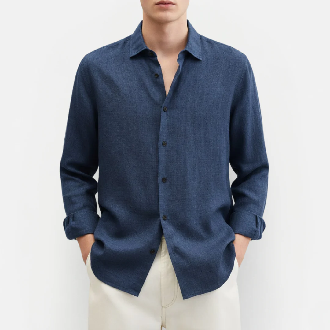 Met zijn combinatie van comfort, functionaliteit en tijdloze stijl is dit heren linnen overhemd een veelzijdige toevoeging aan je kledingcollectie. Ideaal voor mannen die waarde hechten aan een verzorgde en moeiteloze uitstraling.