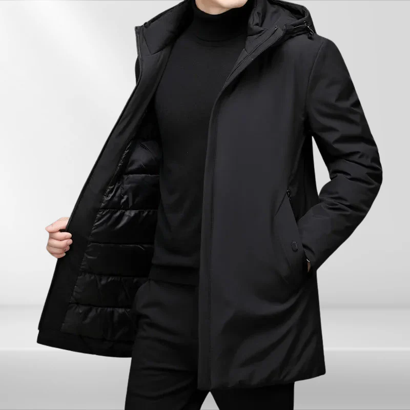 Deze heren winterjas combineert een strak, minimalistisch design met praktisch comfort. Ontworpen voor koude dagen, biedt de jas betrouwbare warmte en een moderne uitstraling die past bij elke outfit – van casual tot zakelijk.