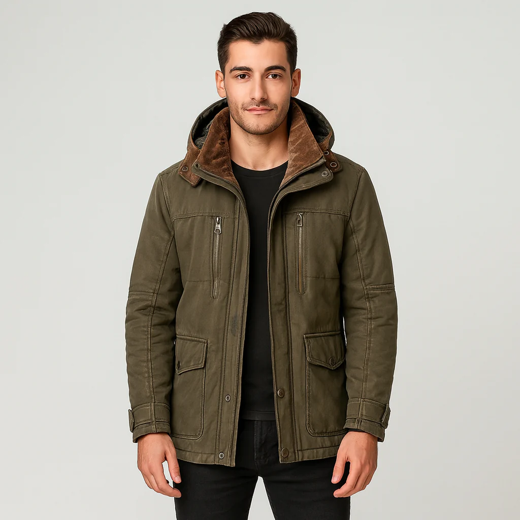 Deze heren winterjas met capuchon is ontworpen voor comfort en stijl tijdens koude dagen. De zachte binnenvoering en het moderne ontwerp zorgen voor een warme, verzorgde look die perfect is voor dagelijks gebruik.