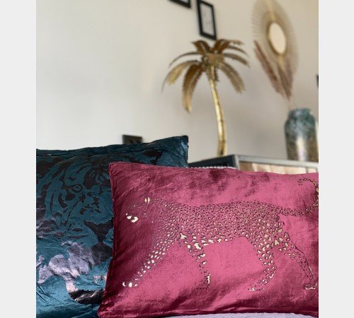 Het blauw met zwart gekleurde kussen ‘Leopard head’ is een aanwinst voor ieder interieur. Dit kussen heeft een breedte van 45 cm en een hoogte van 45 cm.
