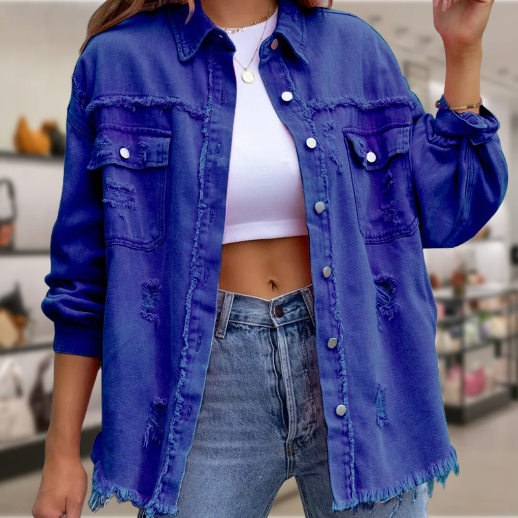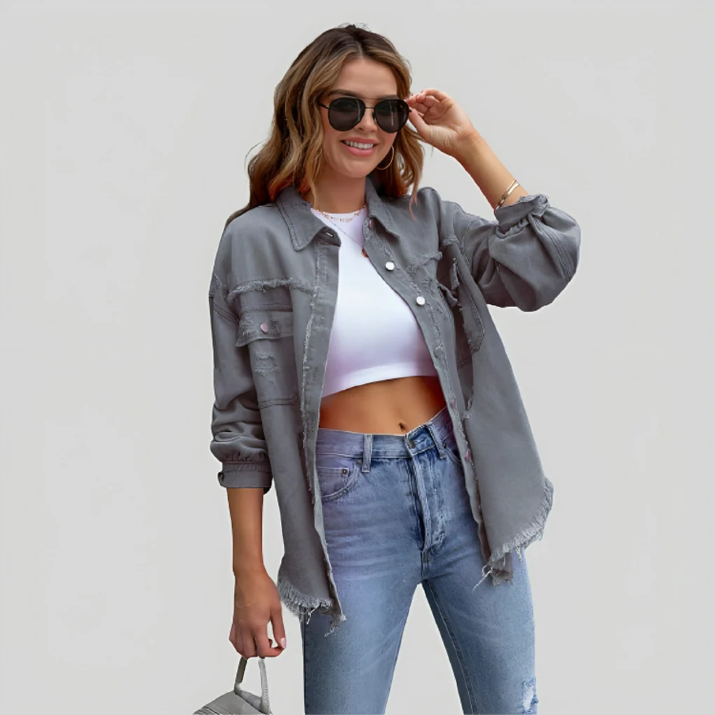 De Lianne Modieuze Gerafelde Shirtjas biedt de perfecte balans tussen casual stijl en een trendy, unieke look. Deze shirtjas met gerafelde details zorgt voor een speelse en moderne touch, ideaal voor dagelijks gebruik of casual uitjes. De comfortabele pasvorm maakt het een veelzijdige toevoeging aan je garderobe.