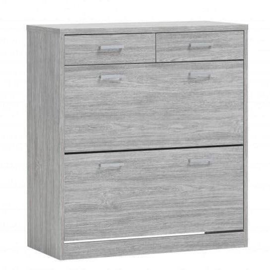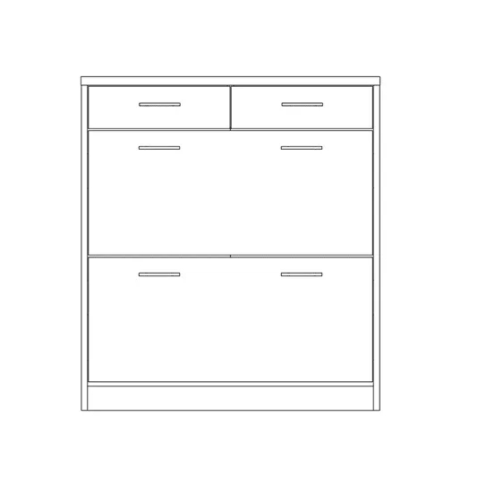 Deze schoenkast Spacio heeft twee laden en 2 deuren. Het is gemaakt uit MDF en spaanderplaat, afgewerkt met ABS boorden.