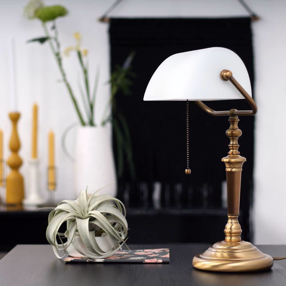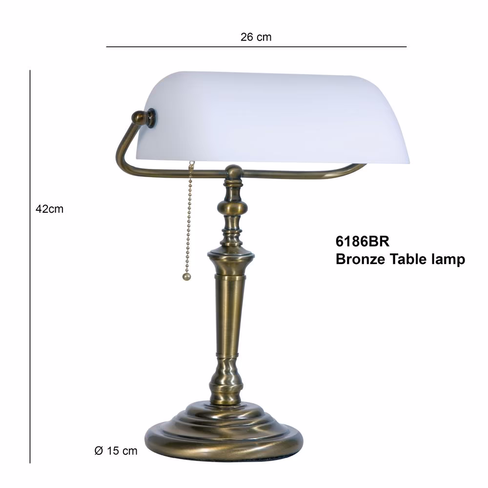Tafellamp, bureaulamp, leeslamp 1-lichts Glas STEINHAUER, 6186BR, Tafellamp- Bureaulamp- Steinhauer- Ancilla- Klassiek- Brons Wit, Metaal Glas