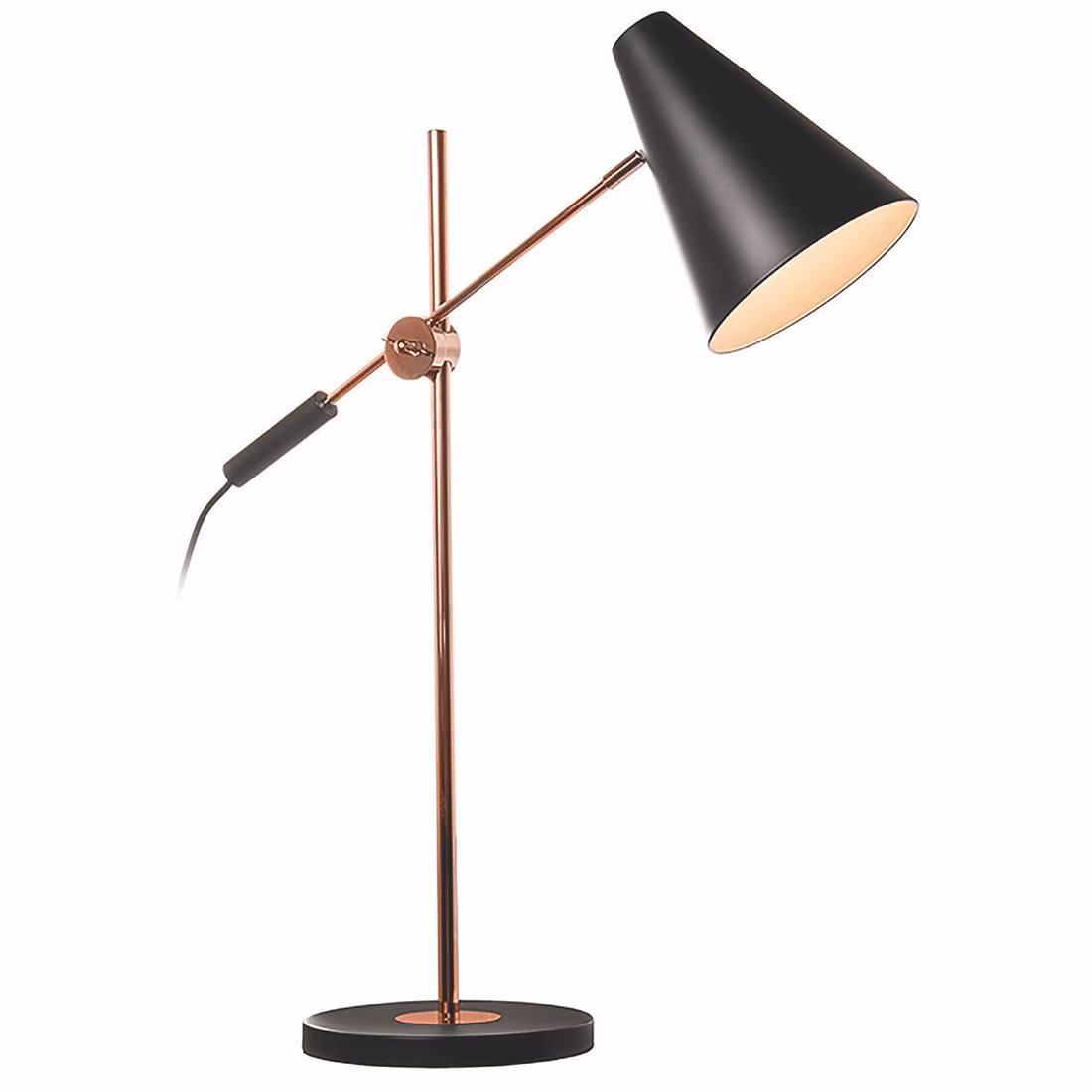 Tafellamp, bureaulamp, zwart/koper 1-lichts “Obscur” 69cm hoogte, snoerschakelaar E14, ART DELIGHT