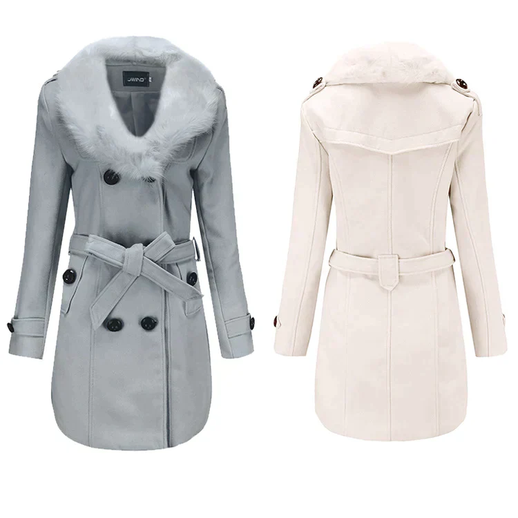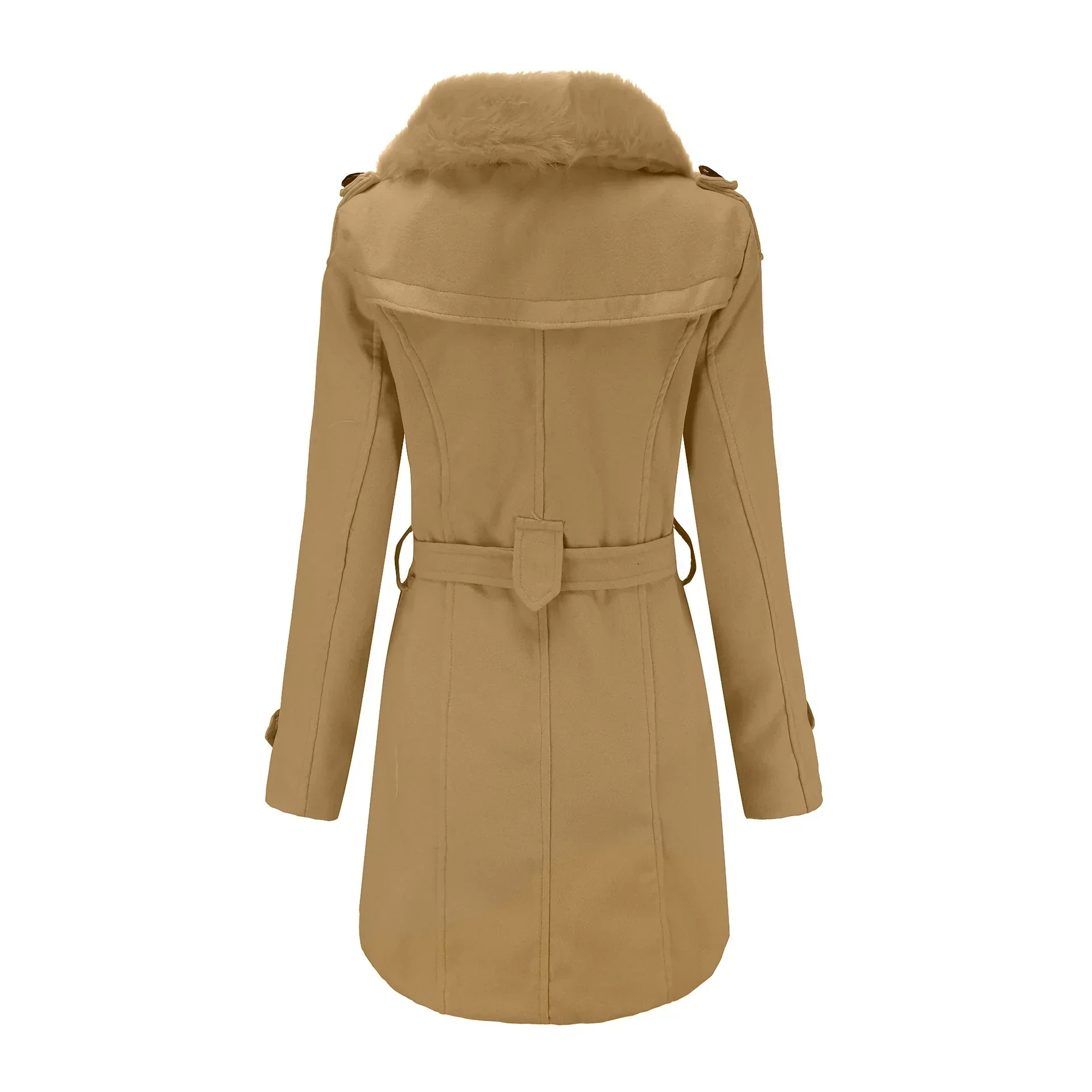 De VelvetWarm winterjas is de perfecte mix van mode en functionaliteit. Deze jas biedt bescherming tegen wind en lichte regen, terwijl de zachte bontkraag en het elegante wollen design elke outfit naar een hoger niveau tillen.