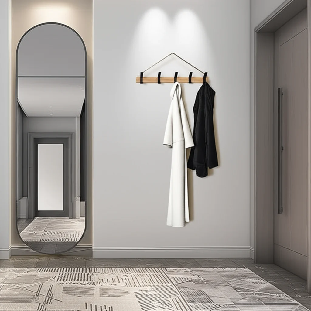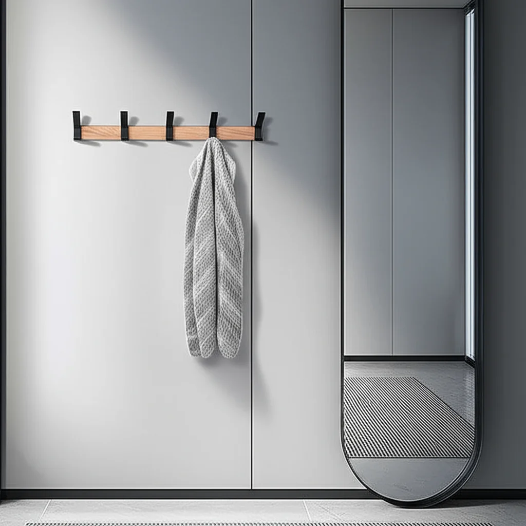 Wandkapstok – Verstelbare Haken – Zwart – Scandinavisch Design – Voor Hal en Slaapkamer – Hout en Aluminium – Afmetingen 40 x 7 x 7 cm