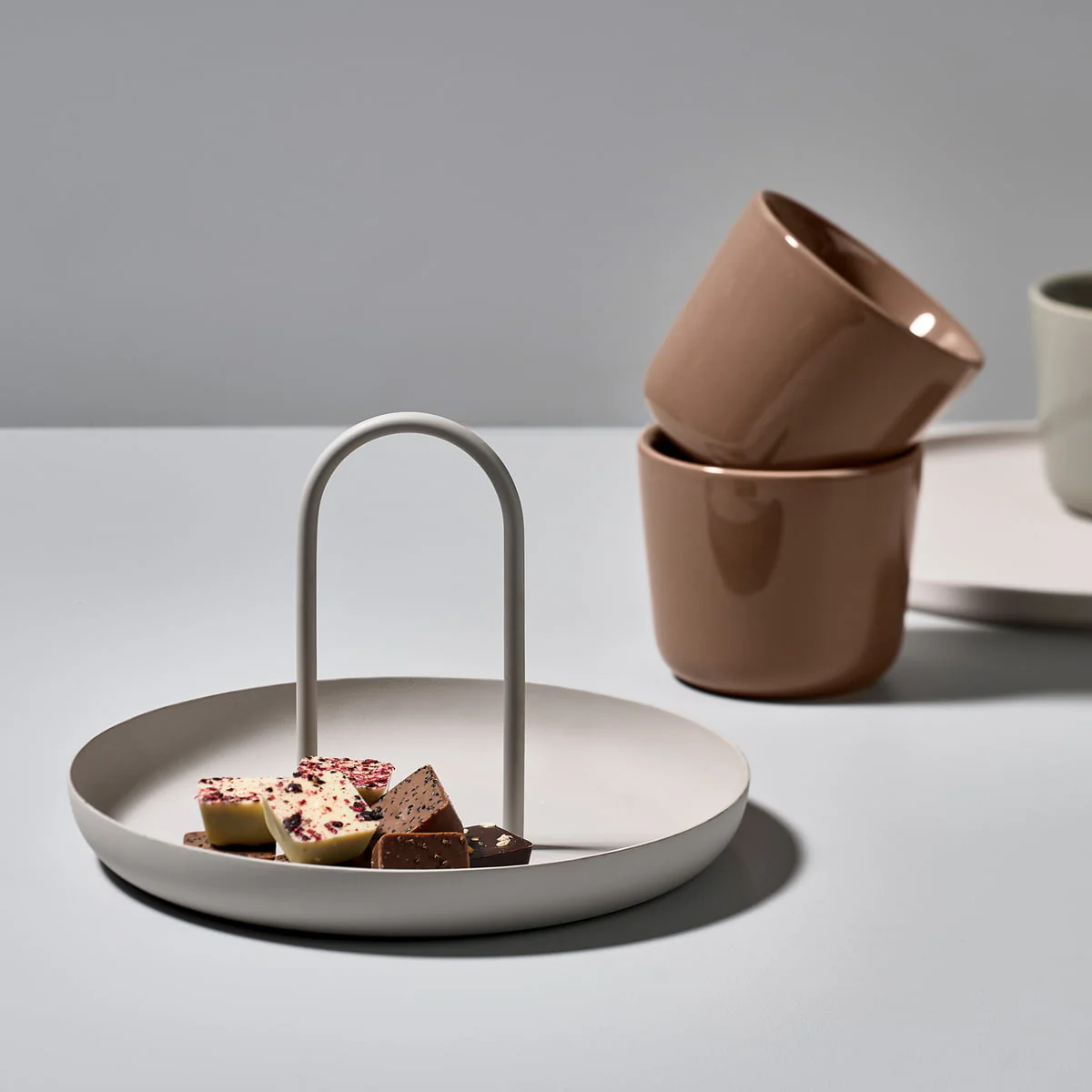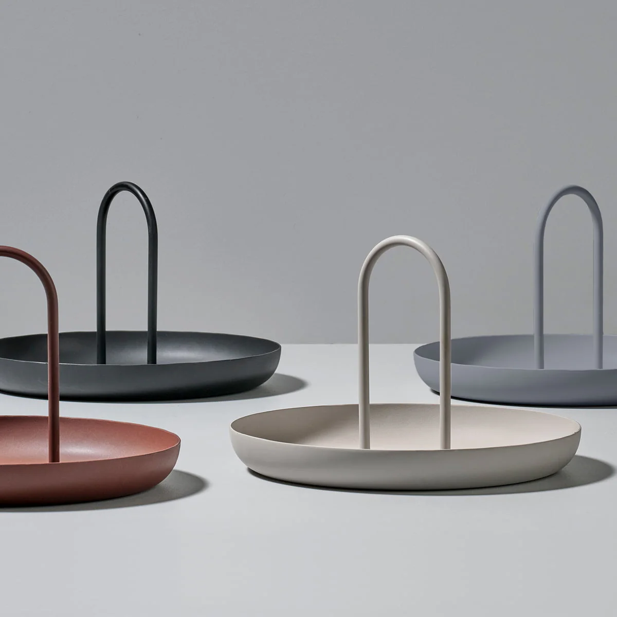 Het Singles dienblad van Zone is vervaardigd van mat staal. Dit decoratieve dienblad is voorzien van een handvat, waarmee snacks, drankjes en andere kleine voorwerpen gemakkelijk met één hand worden vervoerd.